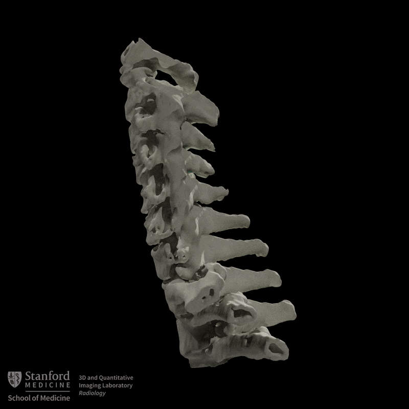 Figure F: Rotational volume render with a cutplane exposing the spinal canal. Learn more about cutplanes here.
