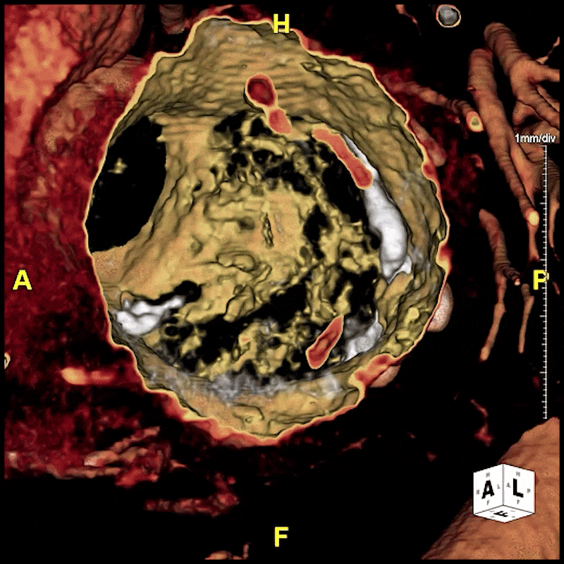 Figure A: 4D volume rendering of the mitral valve provided to the clinical team as part of the valve replacement protocol. The clip demonstrates valve motion throughout the cardiac cycle, showing how the leaflets open and close with each heartbeat.